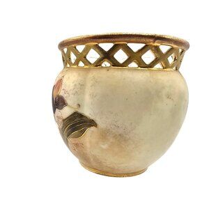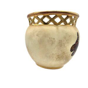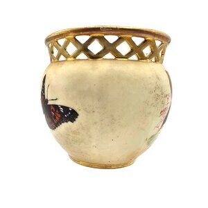 Antique 1893 Robert Hanke Porcelain Vase Lattice Rim Orchid Butterfly Design