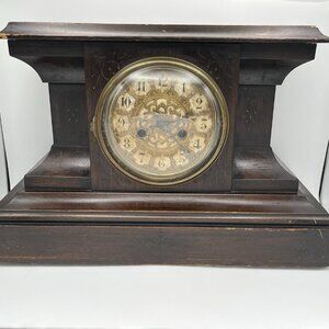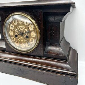 Antique 1898 Waterbury Mantel Clock Wood Brass Dial Edwardian FOR PARTS