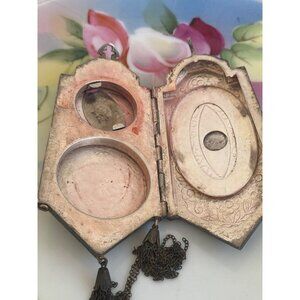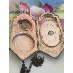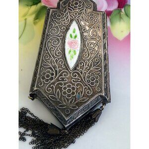 Antique 1910s Compact Coin Purse Silverplate Guilloche Enamel