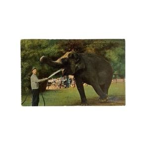 Antique 1912 Ephemera Posted Signed Postcard Best Wishes Humorous Elephant Handler Printed Color Lithograph Some wear and discoloration from age.