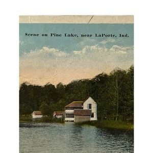 Antique 1915 Printed Lithograph Ephemera Postcard Scene On Pine Lake Near LaPorte, Indiana With ghostly Twins Boys Fishing Souvenir. 3.5” x 5.5” corners slightly rough. Some discoloration and wear from age. See all images