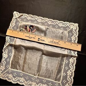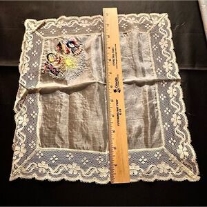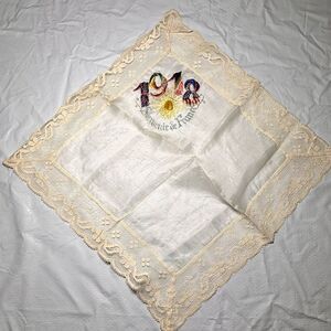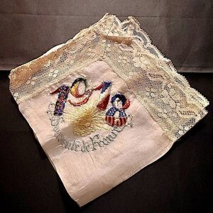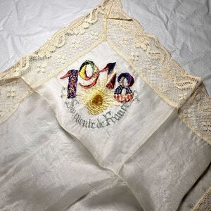 Antique 1918 WW1 Souvenir of France Hand Embroidered Silk and lace Handkerchief