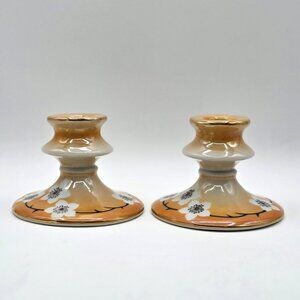 Antique Pair Of 1920's Ceramic Hand-Painted Moriyama Mori-Machi Lusterware Candle Holders