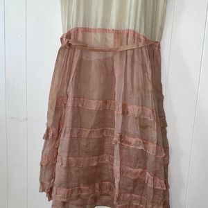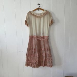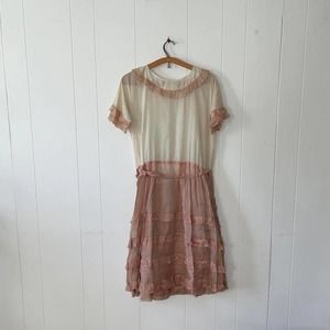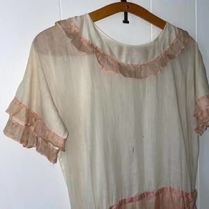 Beautiful, ethereal antique 1920s ivory cotton voile drop waist dress with dusty rose organza ruffle trim/skirt. So sweet and romantic. Extremely lightweight, soft and sheer. Feels like wearing nothing. Hangs beautifully.