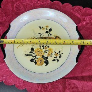 Antique 1920s MOSCHENDORF BAVARIA Cake Serving Platter 10" Near mint condition. Hand Painted, beautiful pearl rim. Slight signs of wear on black handles.