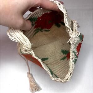 Antique 1920s Macrame Crochet Drawstring Purse Orange Flower Crossbody Tassels