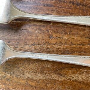 This beautiful set with the intricate Grosvenor pattern is in gently used antique condition. It came out beautifully after being polished! There is some patina and a couple of marks that would probably come out with even more rigorous polishing. Let me know if you have any questions!