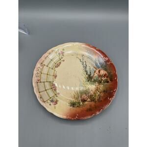 Antique 1922 Calendar Plate D.E. McNicol Pottery Dog Rabbit Hunt Scene