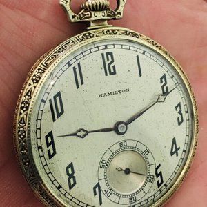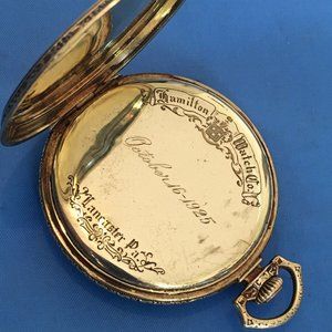 Antique 1924 Hamilton Pocket Watch Solid 14k Yellow Gold 62.2 grams ,Size 12s , runs very good