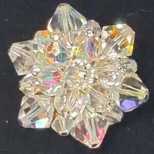 Antique 1930s Aurora Borealis Crystal Cluster Atomic Brooch Vintage Unsigned 1.5 in.