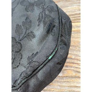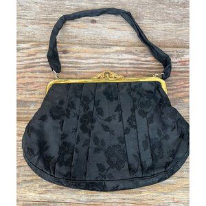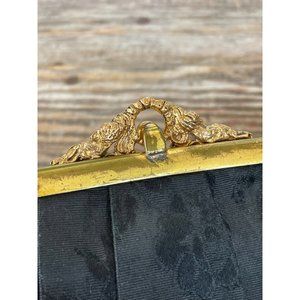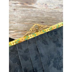 Antique 1930s Black Brocade Purse Painted Enamel Floral Frame