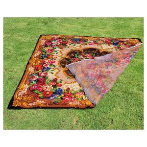 Antique 1930's Bright Floral Woven Carpet Rug Bedspread Couch Cover