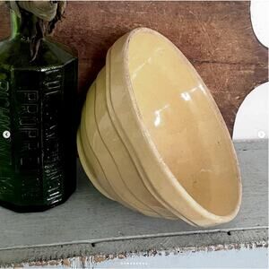 Antique 1930s Yellowware Mixing Bowl Collared Rim Wavy Ridged Bands Beehive