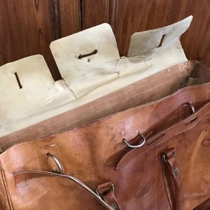 Very Rare large Antique 1955 Leather U.S Mail Money Duffle Railroad Overnight Cross body Suitcase Bag.