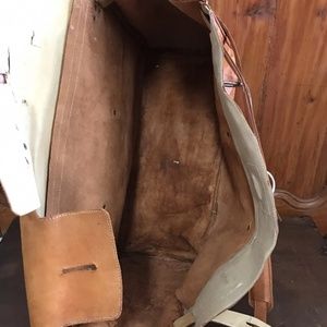 This rare bag Justo Prieto was made in Paraguay in the 50’s. Bag is grand in appearance measuring 21” in width, 14” high and 9” in depth. Condition is Excellent solid condition with one brass foot peg missing. See all photos. Enjoy!