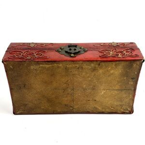 Antique 19th Century Handmade Leather Red Chinese Box Lacquered gold gilt symbol