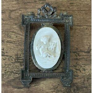 Antique 19th Century Napoleon III French Meerschaum Carved Relief Brass Frame