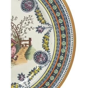 Antique Wedgwood 'Garland' plate-extremely rare! This plate features a beautiful multicolor 'Garland' pattern, showcasing the artistry of Kate Greenaway, a famous Victorian artist that Wedgwood featured on some of their plates. The design is from a Wedgwood tile series, which depicts English children at play, and this is one of the plates from a series of twelve. The plate has both the impressed "Wedgwood" mark as well as a Wedgwood Etruria England and is numbered. It's an antique from about 1850-1899 (1879 based on the 3 letters impressed on back). This plate is in excellent antique condition with no chips, cracks or visible crazing-slight crazing can be seen with magnification. A great addition to any Wedgwood collection. # 5454
