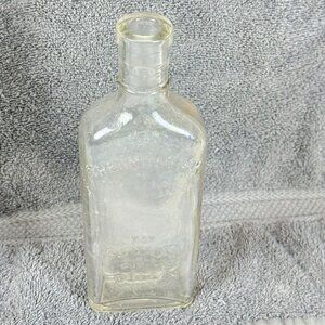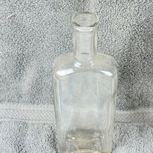 Antique glass, vintage bottle, decorative piece, collectible bottles, rustic display, apothecary decor, embossed glass, antique detailing, clear glassware, farmhouse style, vintage home, rare finds, glass decor