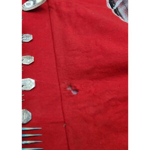 Antique, made in 1916. Set of 24 pcs. 1847 Rogers Bros XS Triple Silver Plated Heraldic Pattern Hammered Flatware in a fabric bag with a faux leather cover. Monogrammed 'A'. The silver plating has darkened. I didn't clean the set because some people prefer a dark silver finish. The set shows normal age-appropriate signs of wear. The bag is also old and shows signs of wear on the material, including some holes.