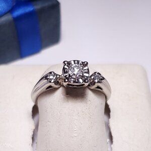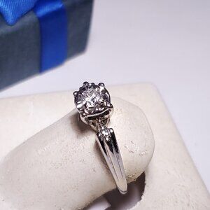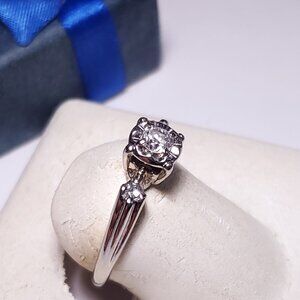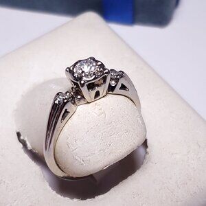 Antique .26ctw Natural 3Diamond scroll Top 14Kt W/G SI2 GH Engagement Ring#22941