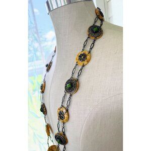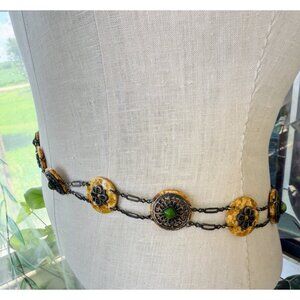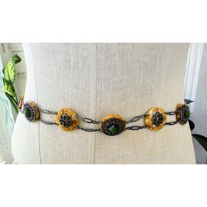Antique 30's Celloid Circles Green Glass Silverplate women's Link Belt/Necklace