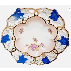 Antique 3578 Hand Painted Pierced Porcelain Bowl w/Gold Leaf Detail Decor Dish