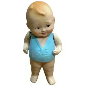 This beautiful antique doll from Germany is a must-have for any collector. Measuring 5 inches and made entirely of bisque material, this doll features a closed mouth and is designed to resemble a baby bud. Its unique theme of babies and set that includes a doll make it a wonderful addition to any collection of dolls and doll playsets.
