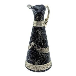 Antique 6" banded brass vase footed Patina flared neck round body Far East