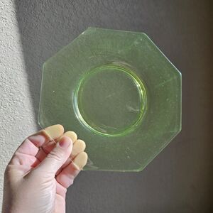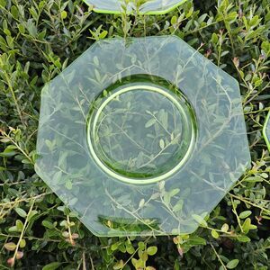 Antique 7" Heisey Octagon Green uranium VASELINE GLASS desert plates X4