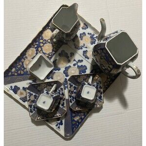 Antique 7 Piece Fukagawa Koransha Cobalt Blue and Gold Gilt Tea Set W Platter