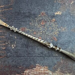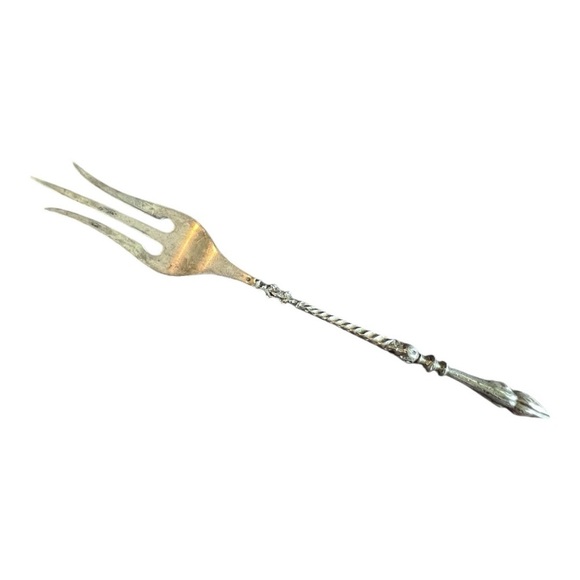 Antique 900 Silver Ornate Serving Fork – Twisted Handle, 7” Long