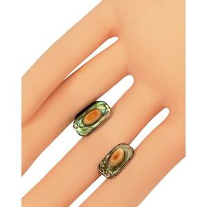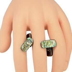 Antique 925 Sterling Silver Men's Cufflinks Abalone Mother Of Pearl Rectangle