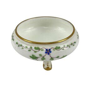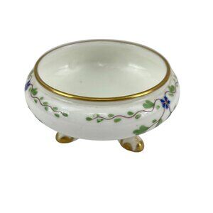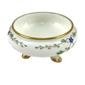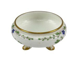This exquisite piece is an embodiment of artistry and history. Crafted by A.B. Daniell & Sons, this hand-painted porcelain bowl is adorned with intricate floral designs and finished with an elegant gold trim. Its three-footed base adds a touch of sophistication, making it an exceptional addition to any collection or display.