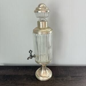 Antique | Absinthe Fountain Dispensing Decanter Ribbed Clear Glass Silver Italy