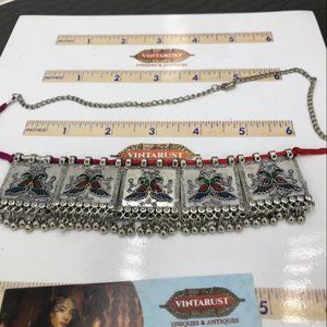 Antique Afghan Kuchi Choker Necklace, Afghan Tribal Choker Necklace, Multicolor