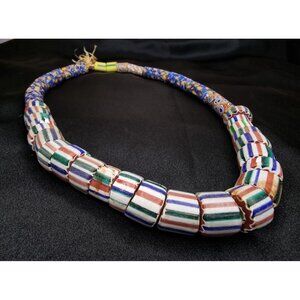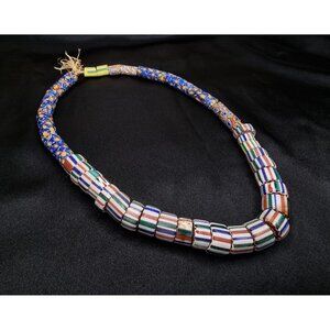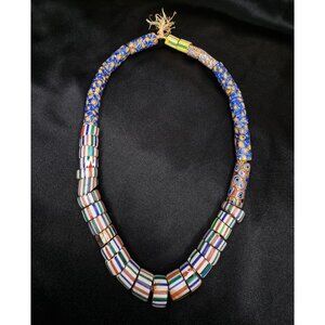 This necklace is made of African trade beads, often called "Venetian Millefiori" and "Chevron beads".