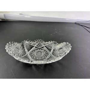 Antique American Cut Glass Hibstars Fans Sawtooth Edge 8 1/4 " Oval Bowl