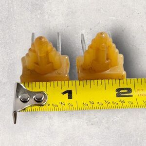 This is a set of two tiny Art Deco plug-in nights, they are the GE building in New york. When I plug them in one works great, the other one flashed as I plugged it in so it may have gone out just now. LOL there is also a possibility you could get it and jiggle it and make it work, but no guarantees. These super cool night lights plug directly into the outlet and shine a bright orange. If you're looking for something unique and quite rare don't pass these up because I've yet to see another set like them.