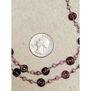 Antique Art Deco Amethyst Color Molded Flower Shape Glass Beads Flapper Necklace