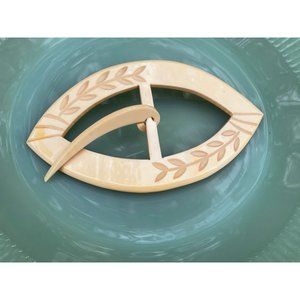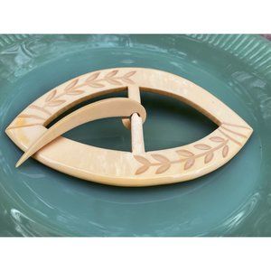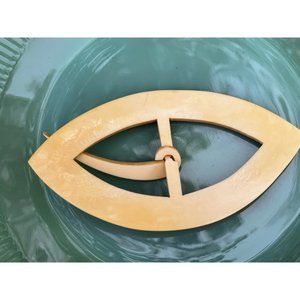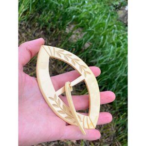 Antique Art Deco HUGE carved Celluloid Ladies Belt Buckle 5"