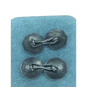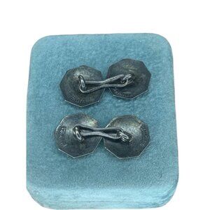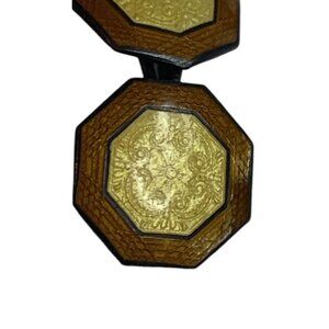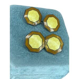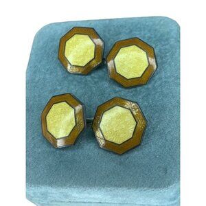 Antique Art Deco Signed Hallmark Yellow Brown Guilloche Enamel Cufflinks Pair Hexagon