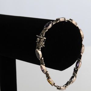 Antique Art Deco Silver Marcasite and Gem Bracelet incl Amethyst