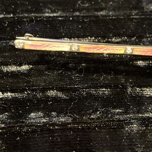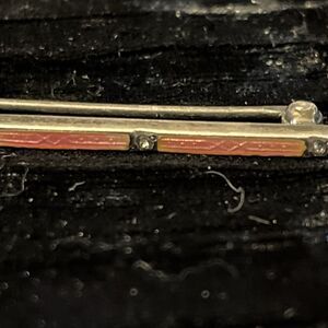 Antique Art Deco Sterling Allco Pink Enamel Rhinestone Bar Pin Brooch