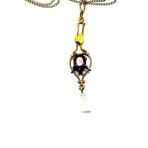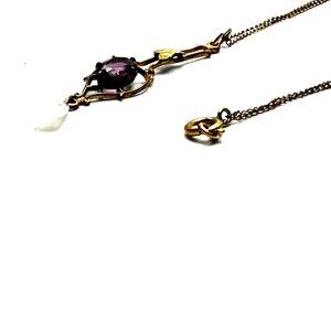 Antique Art Nouveau Amethyst and Opalescent Glass Pendant: Gold Filled Necklace