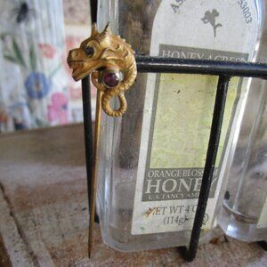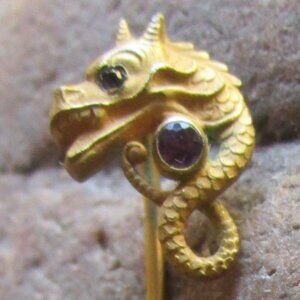 Antique Art Nouveau Brass Amethyst Dragon Stick Pin