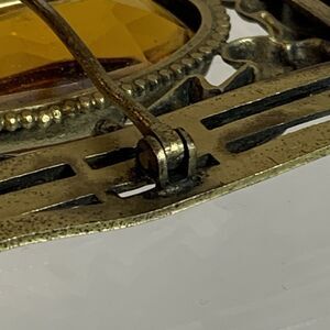 Antique Art Nouveau Brass Sash Pin Amber Glass Stone Open C Clasp 1910s