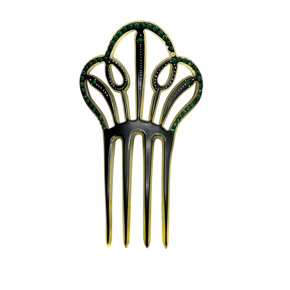 Antique Art Nouveau Celluloid Hair Comb with Green Crystals