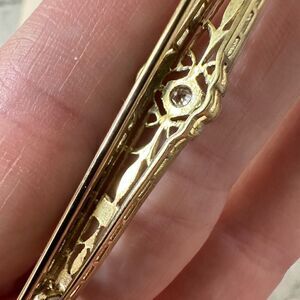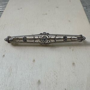Antique Art Deco 14k Gold With Diamond Bar Brooch