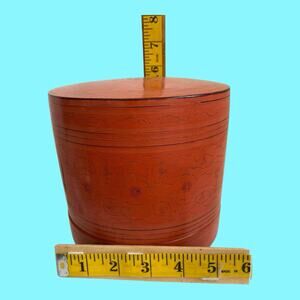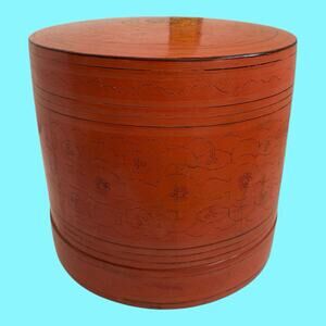 Antique Asian Burmese Red Cinnabar Lacquered Betel Box Hand Crafted & Painted